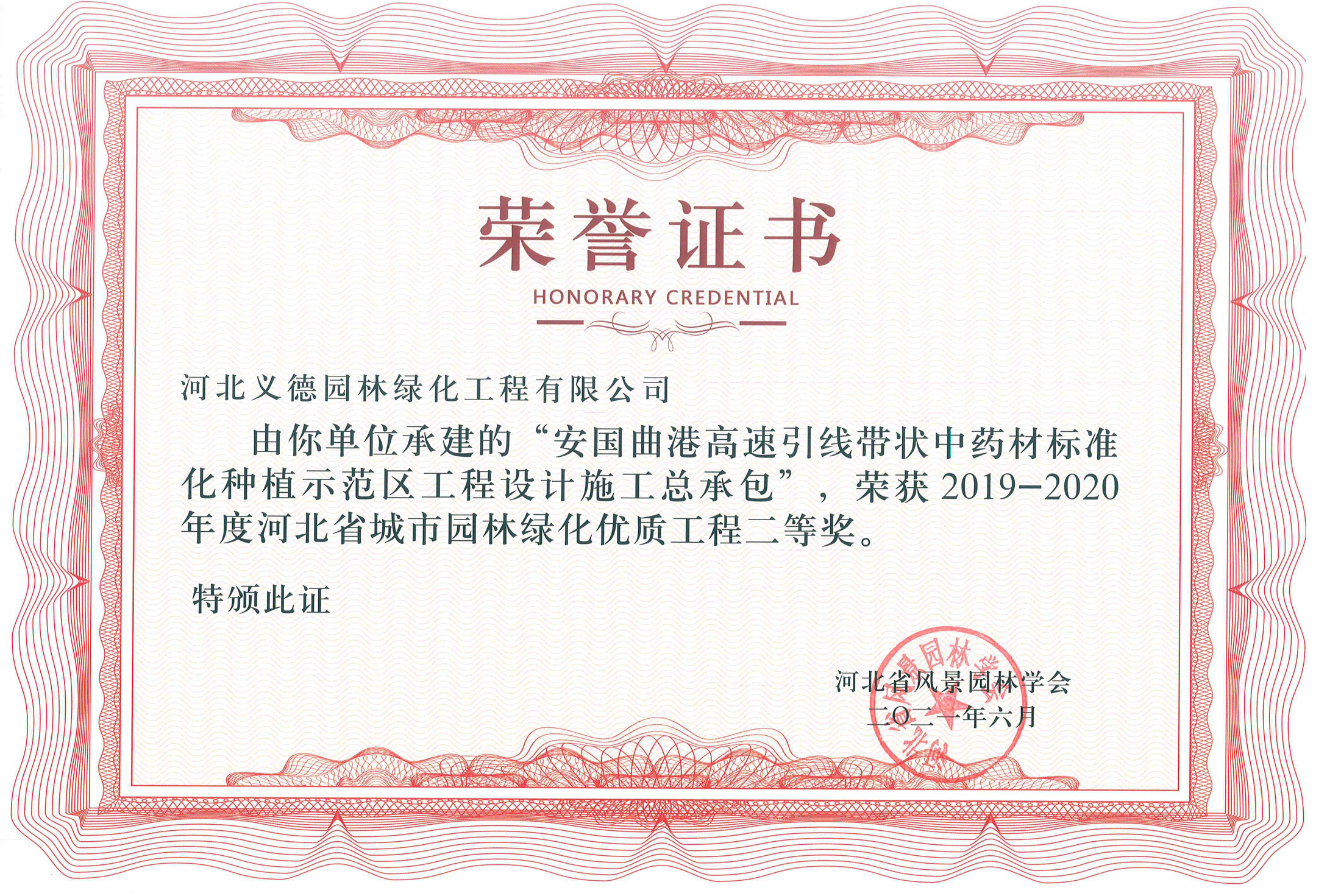 工程業(yè)績榮獲有2017-2018年度河北省城市園林綠化優(yōu)質工程二等獎兩個;2019-2020年度河北省城市園林綠化優(yōu)質工程二等獎兩個、三等獎兩個;2018至2020年保定市燕趙杯優(yōu)質工程五個;2020年度石家莊市優(yōu)質工程一個。